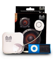 Plug it. Stick it. Rock it. The Rock-It portable vibration speaker system takes music from your device and generates it into vibration sequences. It sends those vibrations through the Rock-It "pod" which you can stick to any object. Simply press play on your device (iPods, MP3 players, mobile phones, laptops, etc.) and Rock-It will turn the object into a speaker.